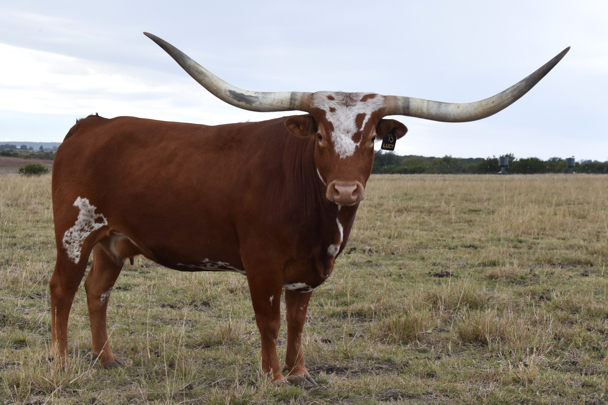 Lucy is sired by Rebel HR and has a pedigree that includes Bandera Chex, Peacemaker and Rosemary. She’s got a beautiful feminine face with great conformation. While at Buxton longhorns she’s produced two heifers with fantastic conformation.