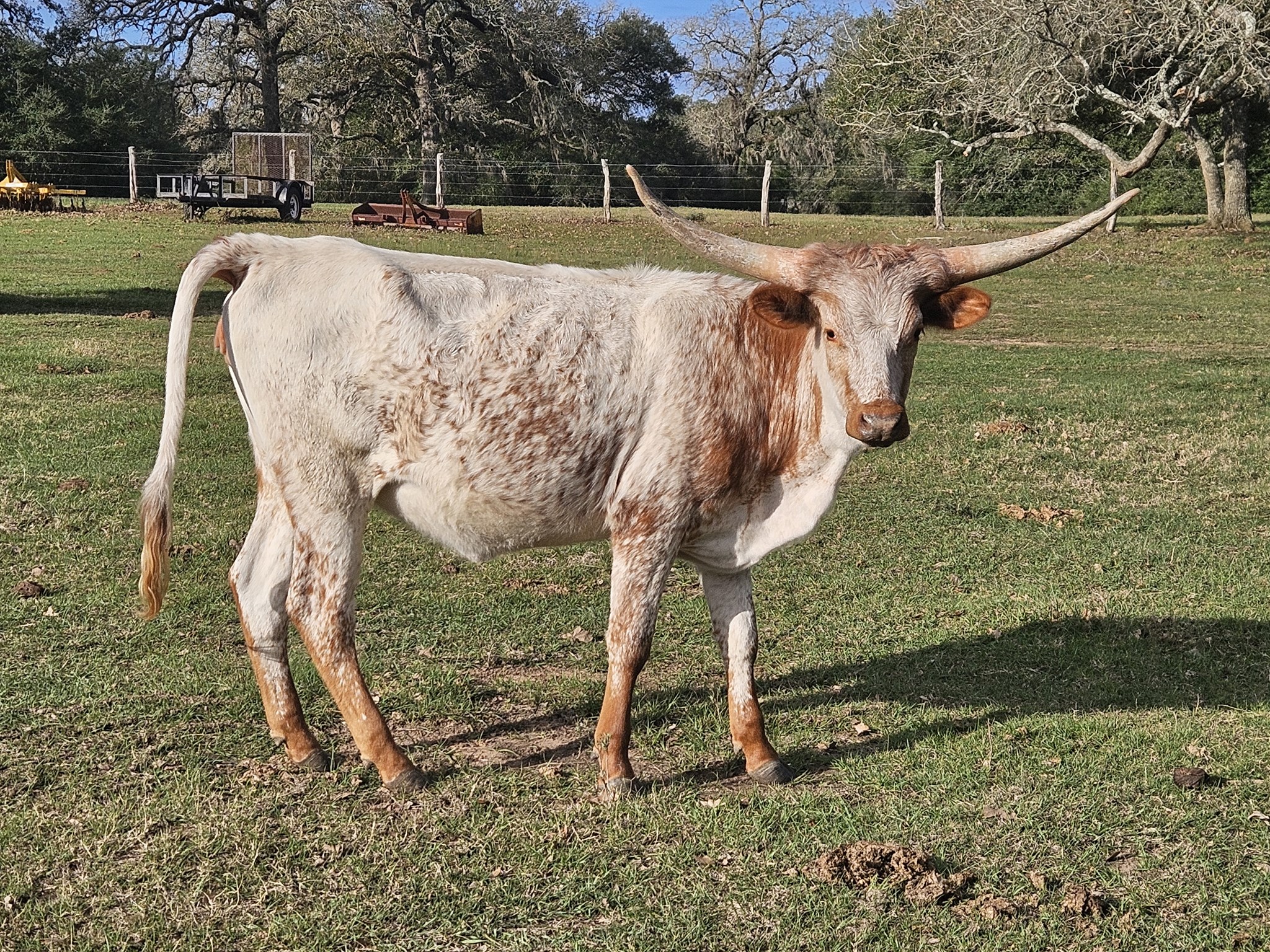 This full bodied heifer calf has good early horn growth for her age. I expect her to be a large and correct cow like her dam. Her sire is Chico 86 who is a Del Charro son. Her Dam is a big horned and large bodied cow who always gives us the largest calf each breeding season. We love her color. She is Brucelosis vaccinated and will be registered for her new owner.