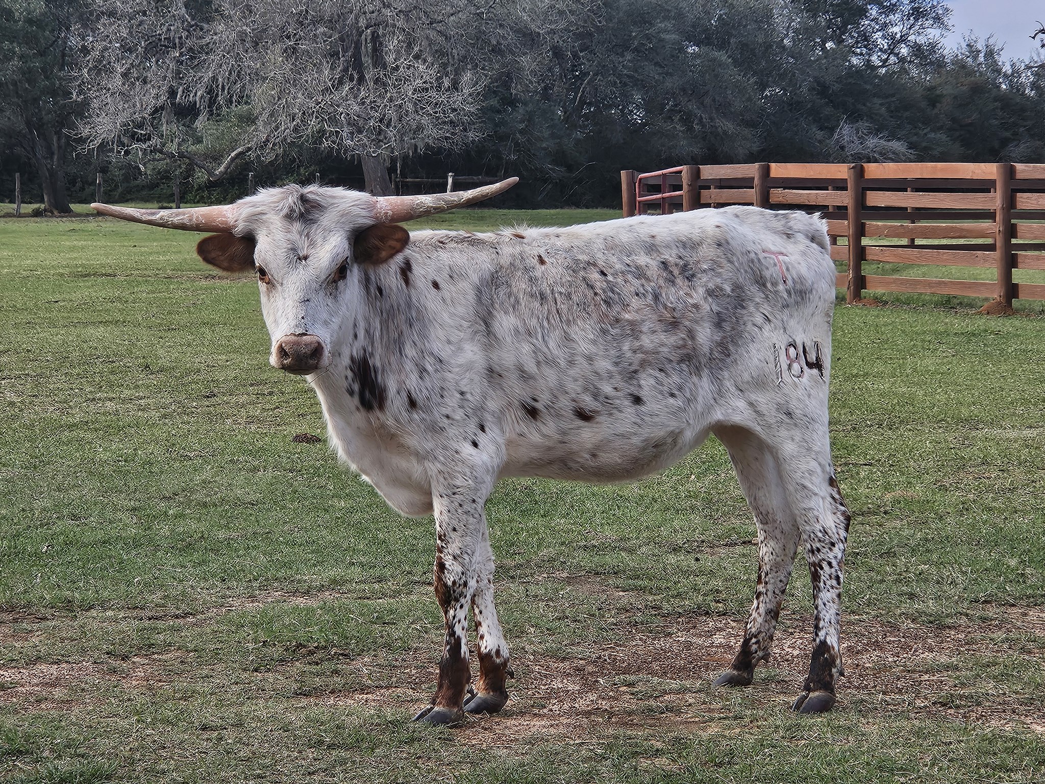 Pretty and correct Heifer out of a Pearl Snap BCB daughter. Her sire is Chico 86, a Del Charro son. She also has Bandera Chex and JBM Becca II in her pedigree. She seems to get more color every time we look at her. She has a very calm disposition as well. She's Brucelosis vaccinated and will be registered for her new owner.