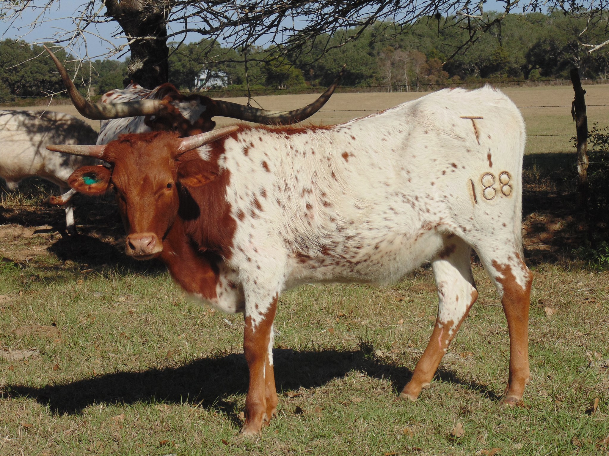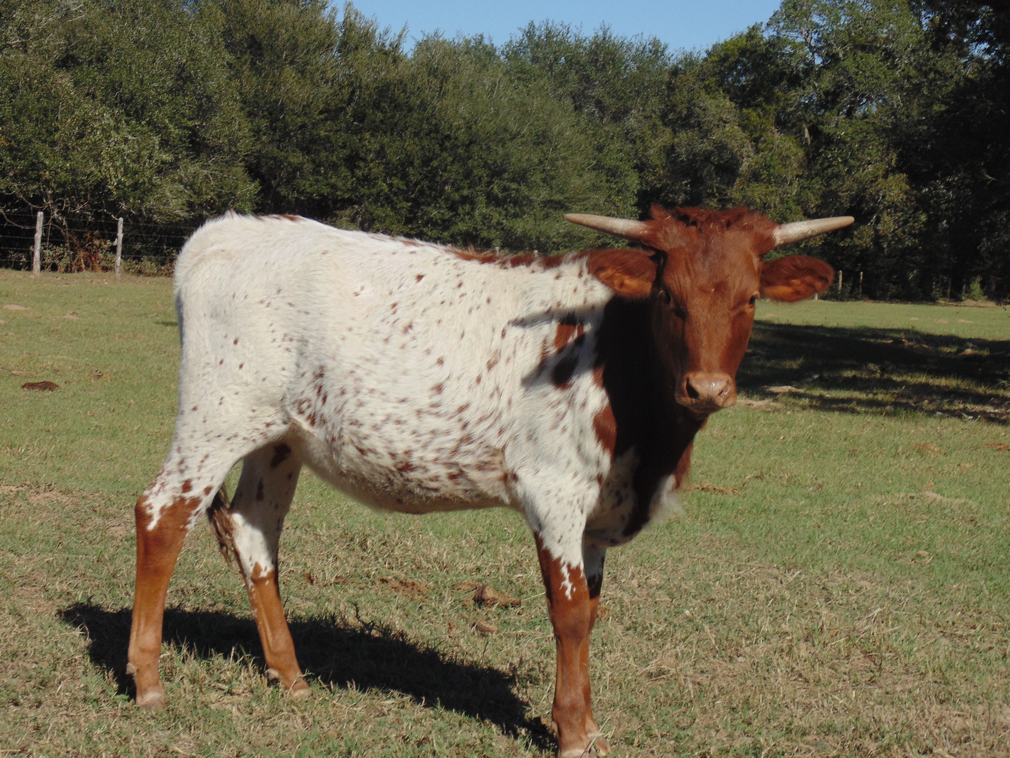 Good confirmation and early horn growth on this 2025 heifer calf. Her Dam, Bolero's Ballerina, is one of our best producers and her sire is Chico 86, a Del Charro son. She also has a super nice pedigree and flashy color.